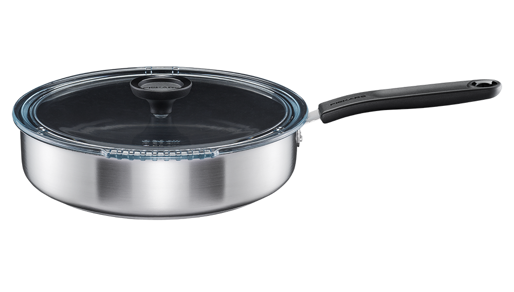 - A 26 cm-es Fiskars Functional Form párolóserpenyő ideális a mindennapi főzéshez, lapos aljával és magasabb oldalával tökéletes a pirításhoz, pároláshoz és egyserpenyős ételekhez.