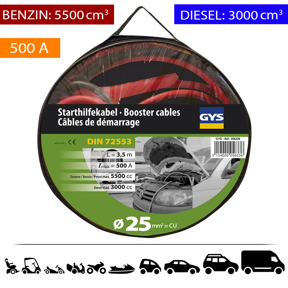 GYS Indítókábel, 500A, 25mm2, 2x3.5m