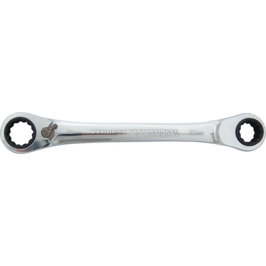 KENNEDY Négy az egyben kétvégű racsnis csavarkulcs, 9 mm - 15 mm